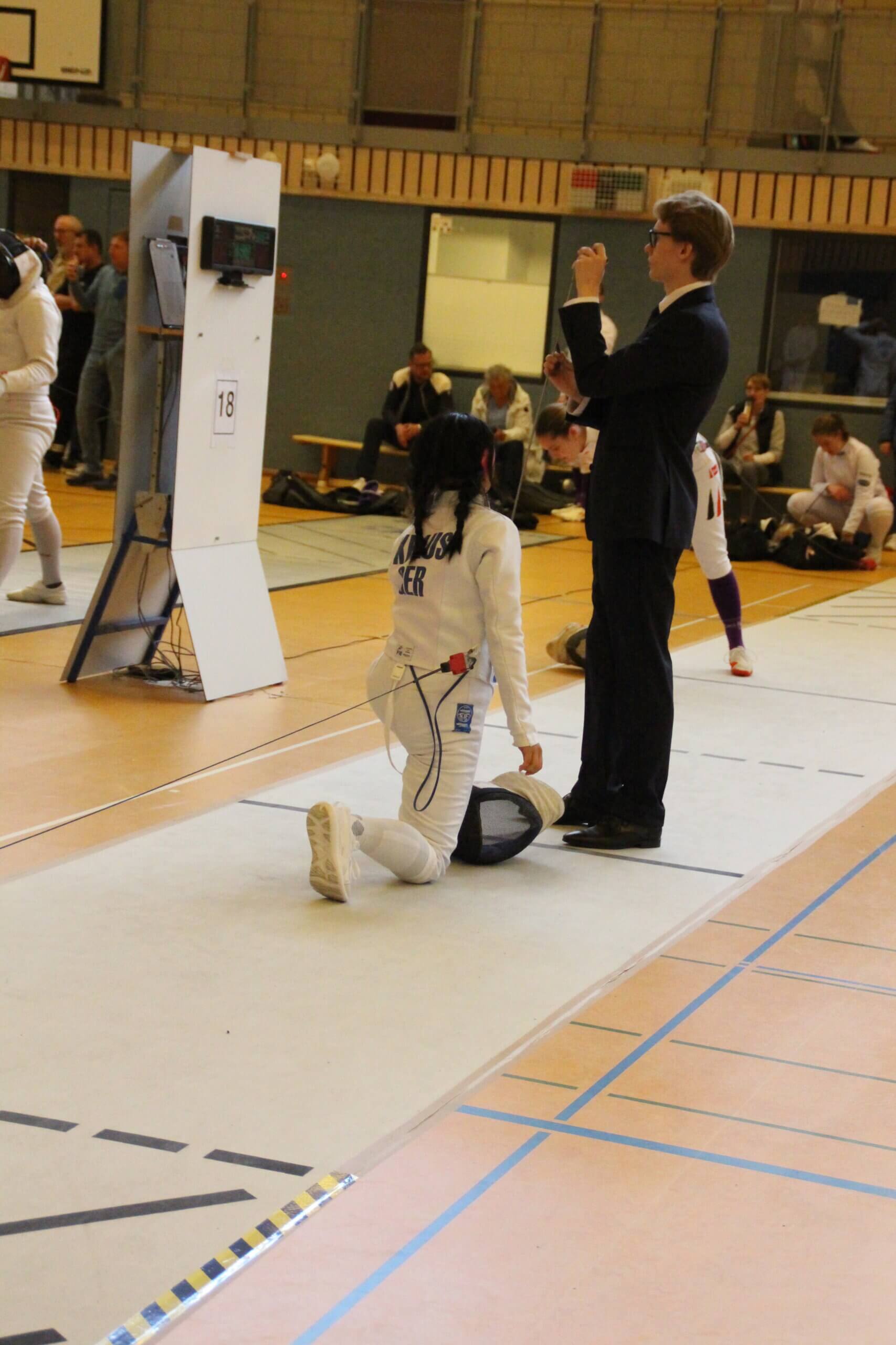 Marikit Kraus startete in der Vorrunde mit einer soliden Leistung. Sie konnte mehrere Gefechte für sich entscheiden und qualifizierte sich damit für die Direktausscheidung. Im K.-o.-System traf sie auf starke Konkurrenz und zeigte trotz eines frühen Ausscheidens Kampfgeist und Technik. Ihr Engagement und ihre Fortschritte sind ein positives Zeichen für die Zukunft der Donauwörther Fechtabteilung.